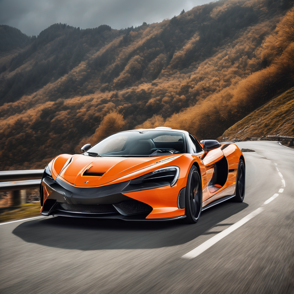 A stunning orange super car on a mountain road, professional automotive photography, high quality, detailed
